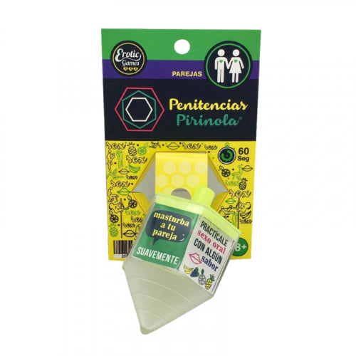 ¡Gira la PIRINOLA PENITENCIA HETEROSEXUAL y descubre qué emocionante desafío te espera! Este juego es perfecto para parejas que buscan agregar un toque atrevido y divertido a su noche. ¡Explora nuevas sensaciones y comienza la diversión!