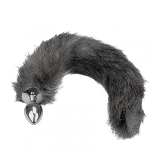 PLUG ANAL METALICO COLA DE ZORRO GRIS